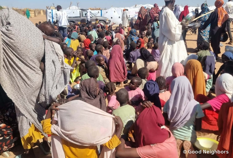北東アフリカに位置するスーダンでは内戦勃発から2年半がたち、1,170万人が避難を強いられています。北ダルフール州タウィラには65万人を超える避難民が集まり、食料や医療、水も不足し、命の危機に直面しています。私たちは2025年12月より、避難民が運営するスープキッチンへの食材支給を中心に、緊急支援を開始しました。