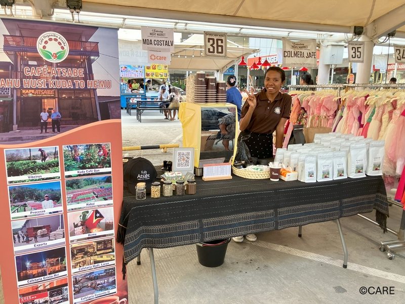 2025年9月、東ティモールの最大級の商業施設 Timor Plaza で開催された「日本祭り」において、当財団が実施している「遠隔集落における生業と食の改善事業」を紹介しつつ、事業地のアッサベの女性たちが生産した製品を販売しました。