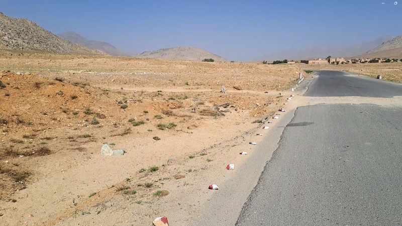 ガズニー県は過去の紛争で幾度も激しい戦闘地になり、地雷や不発弾の汚染面積は国内34県中6番目に大きいとされています。AARの現地スタッフが同県の支援現場へ向かう際にも、地雷が埋まっている危険区域があり、道路脇には危険を知らせるための赤と白の塗料で塗られた石標が置かれています。