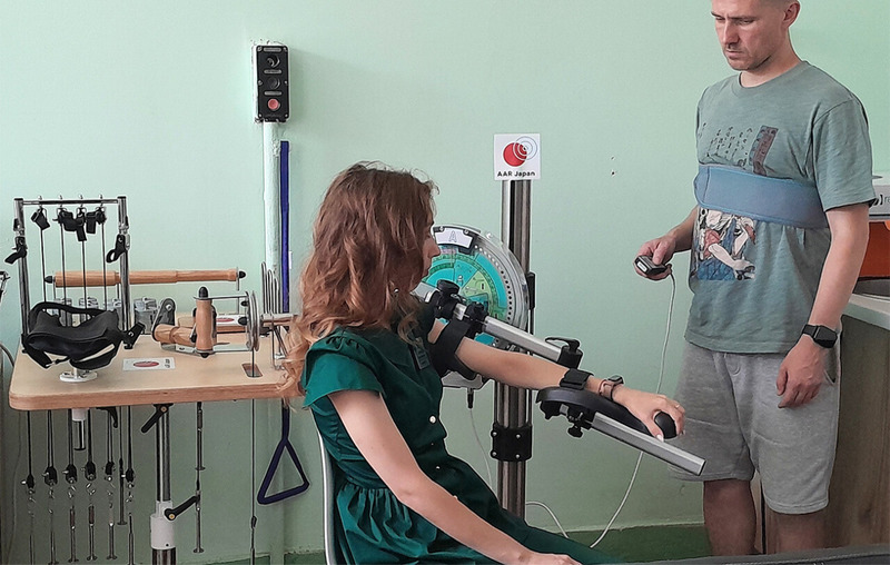 「私は開戦初日からウクライナ軍に従軍していましたが、戦闘中に左足首を負傷し、足を上げることができなくなりました。AAR が支援する病院で、最新の機器を使用したリハビリに励んだ結果、体力と可動域を回復しつつあります」
