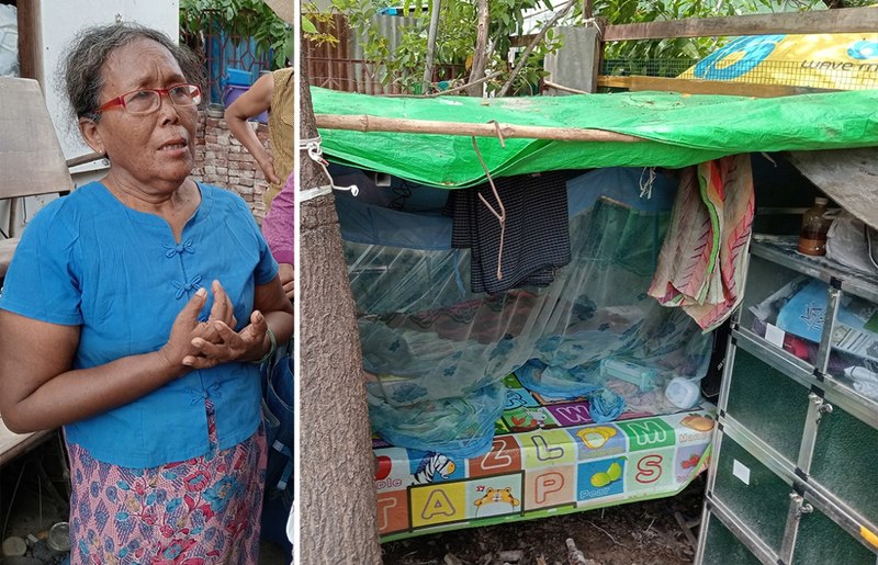 2階建ての自宅に住んでいたマンダレー市内のドーイさん(仮名・60歳代女性)は、がれきの山と化した自宅を前にむせび泣きました。「親戚からおカネを借りて解体するのが精いっぱい。建て直す余裕はとてもありません」。庭の片隅にビニールシートで仮設の屋根を作り、木板を並べた台をベッド代わりに寝ているそうです。