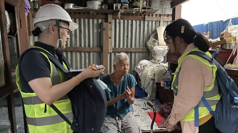 一家の収入は、3人の娘たちが近所の人たちの衣服を洗濯して得るわずかなお金だけ。支援物資である現金を手渡すと、丁寧に感謝の気持ちを伝えてくれました。また、日本は第二次世界大戦中、ミャンマー(ビルマ)に侵攻した歴史があります。「子どもの頃、日本は怖いと思っていたけれど、あなたたちは違う世代だから信じられますよ。本当に来てくれてありがとう」。ドゥムムさんからは、優しく声をかけられました。