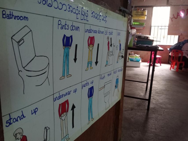 マンダレー市の知的障がいや身体障がいのある児童約20人が利用する障がい児福祉支施設も訪問しました。借金をしながら、私費を投じて施設を運営するドゥティーダさん(仮名、42歳)の顔は悲しげでした。資金難に震災が追い打ちをかけ、来年以降、賃料を支払うめどが立たなくなりました。