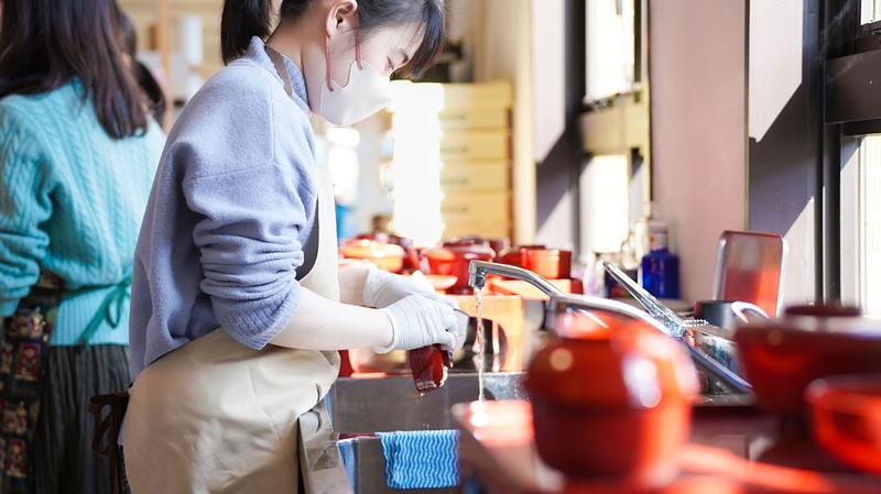 能登の珠洲市のご家庭から、建物被害などに伴い捨てざるを得ない輪島漆器を譲り受け、ボランティアを募って漆器を洗浄しました。