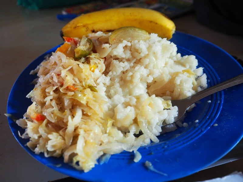 ハニーファさんは、息子と一緒にランチでドードー(青菜)、ポテト、マトケ(料理用バナナ)、ナスを食べたと話してくれました。