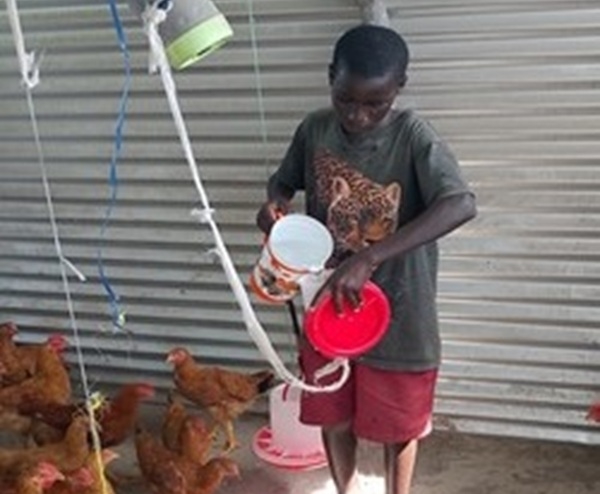 それ以来、ジェイコブ君は家での養鶏にも積極的に取り組むようになりました。毎朝学校に行く前と夕方には、自ら鶏にエサをあげたり、水飲み器を洗ったりしています。実践的なスキルだけでなく、責任感や家族への思いやりを学び、家庭でも頼りにされる存在へと成長しています。