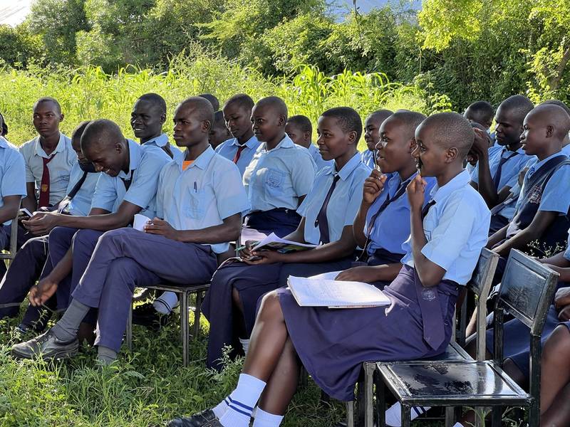 同月の中間評価式には、保健省・教育省や地域行政の代表者、保護者が参加し、協力的で温かな雰囲気の中、活発な意見交換が行われました。現地パートナー団体のプロジェクトコーディネーターのダンからは、成果や課題、今後の計画が報告され、ピアエデュケーターたちも学校での活動や直面する課題について発表しました。