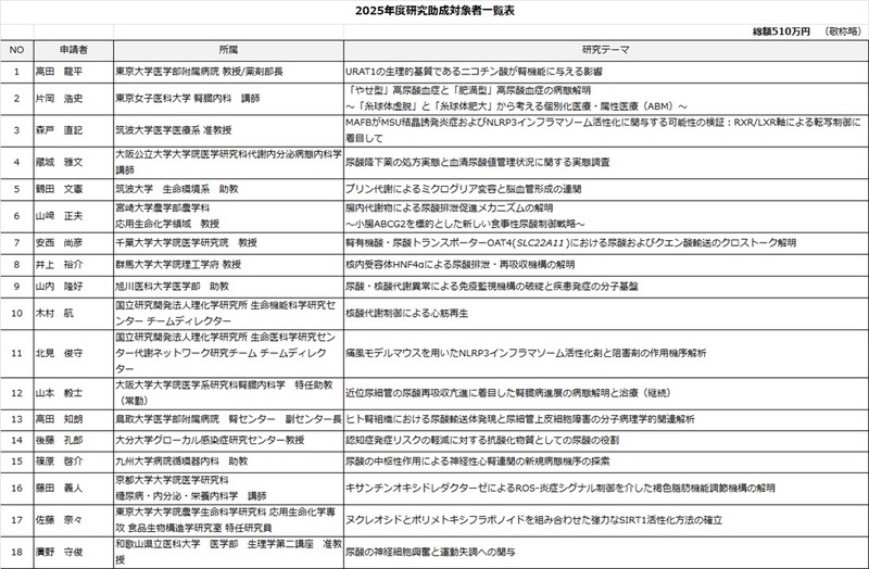 2025年度研究助成対象者一覧表(PDF)