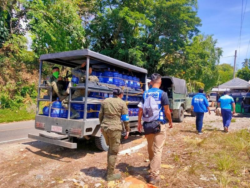 フィリピン軍との活動では、支援が入っていなかったミンダナオ島ダバオ・オリエンタル州カラガ町内の2つの避難所と1つの大学において、各施設の代表者に支援物資をお渡ししました。それらは、代表者の方を通じて、被災者の方へ配布されます。