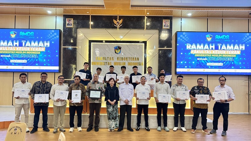 本支援活動は、AMDA本部、AMDAインターナショナル、AMDAインドネシア、インドネシア・ムスリム大学(UMI)が協働して実施し、ドクターや大学の学部長・副学部長などをはじめ、関係者が報告会に集いました。