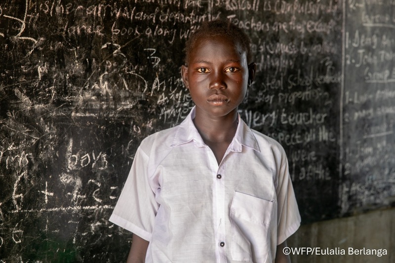 アボクちゃん(10歳)は「将来はお医者さんになりたいので、しっかり勉強したいです」と話します。南スーダンは世界で最も識字率が低い国の一つで、国民の3人に1人しか読み書きができません。また、280万人もの子どもたちが学校に通えていない状況です。2024年、国連WFPは南スーダンで36万4,000人の子どもたちに学校給食を提供しています。南スーダンでは160万人の子どもたちが栄養不足に苦しんでいると推定され、学校での給食が、その日唯一の栄養のある食事となる子どもたちも少なくありません。