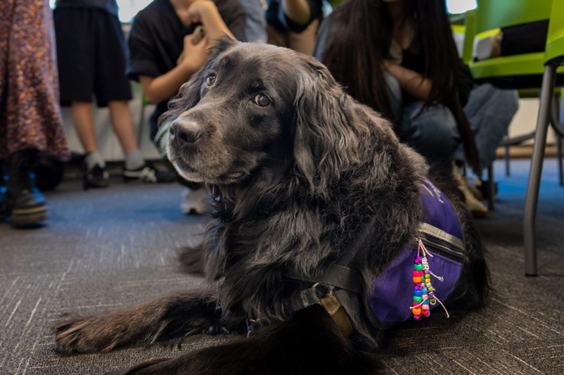 BOOSTの職員の方々と会議室でお話をしていると、ふと足元に一匹のセラピー犬が。途中で私たちの方へ歩み寄り、優しくあいさつをしてくれました。
