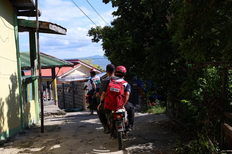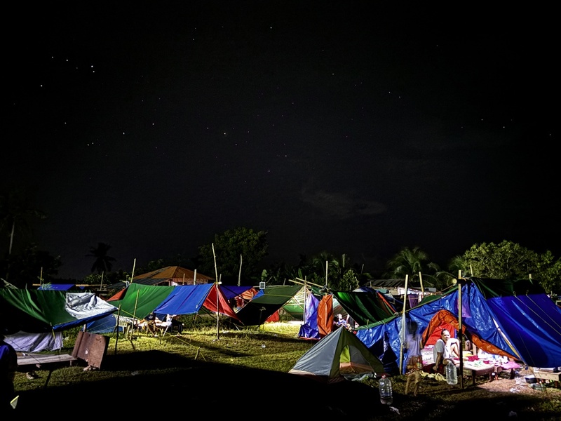 セブ島北部のメデリン(Medellin)の港から船に乗っておよそ15分。ジビットニル島には、667世帯が4つの地区に分かれて暮らしていましたが、2025年9月30日に起きたマグニチュード6.9の地震とその後続く余震の恐怖から家のなかで生活することができず、これまで支援してきた集落同様、それぞれ家の前や空き地にテントやタープを張って生活していました。