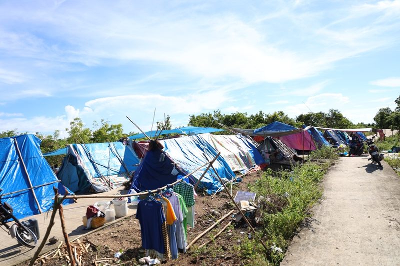 ボゴ市内も含め、セブ島北部では広い範囲で停電と断水が発生。家が被災した家族は、避難所もしくは路上や空き地などにテントやタープを張り生活しています。しかし、テントやタープの数には限りがあるため、ひとつのテントを複数の世帯でシェアしたり、なんとか雨をしのげる程度にターポリンを張って暮らしている世帯も数多くいます。