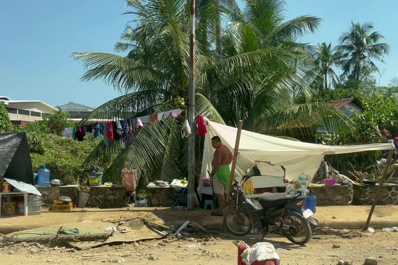家屋に被害を受けたとみられる住民が、道端に簡易的なテントを作って過ごす様子も見られました。