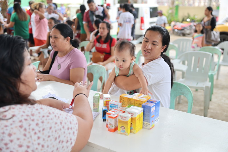 私たちはその日のうちにセブ市内の薬局を回って必要な医薬品を調達。2025年11月9日の朝、診察開始前の診療所に届けました。避難者や周辺住民の方々が朝から続々と訪れ、医師の診察を受けたあと、支援物資である医薬品を早速受け取られていました。