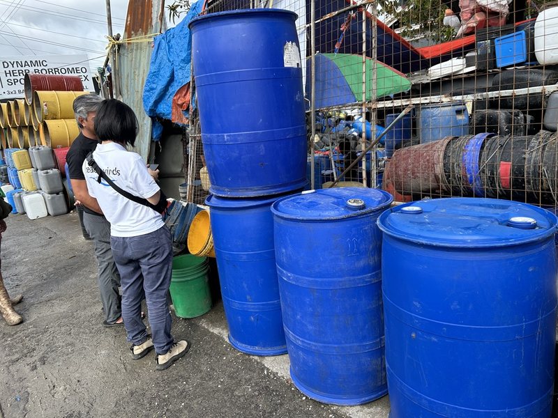 前日までの調査で顕著な水不足を確認していた私たちは、2025年11月8日、まず貯水タンクを購入して先日訪れた避難所に設置しました。この日のセブ島は朝から激しい雨。水はけの悪い場所にはあっという間に深い水たまりができていました。