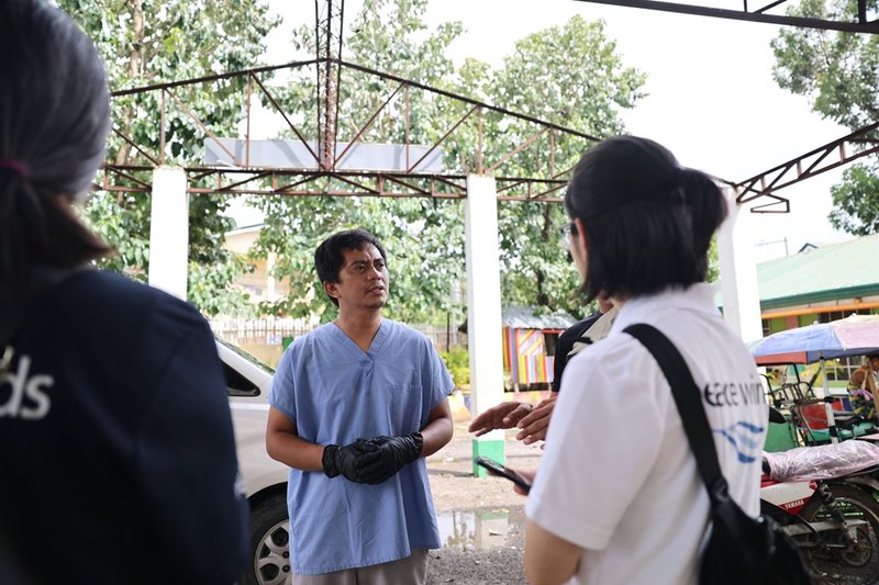 この日のフィリピンは、台風が迫っていた時とは打って変わって快晴で、外で立っているだけで体が火照ってくるような蒸し暑さ。決して衛生的とは言えない被災地や避難所で、この気候条件が被災者の健康に与える影響が懸念されます。ジョバンニさんの活動の重要性も高まっています。