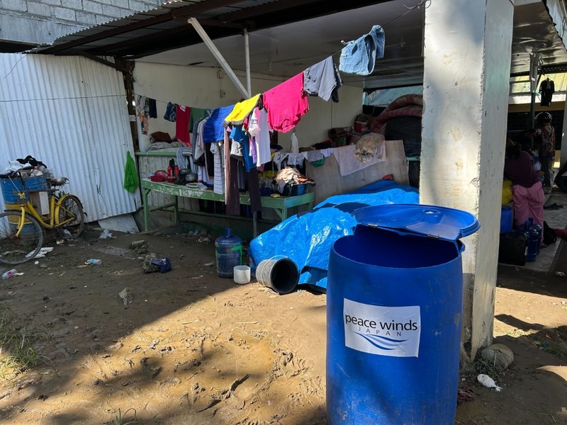 2025年11月11日、新たな台風が過ぎ去ったことを受け、私たちは前回の活動レポートでご紹介した給水タンクや医薬品の支援の結果を確かめるべく、避難所を再び訪れました。設置した給水タンクは生活用水をためるタンクとして、洗濯などに活用されています。